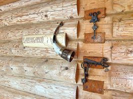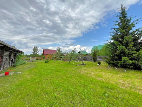 Прежде всего, на участке располагается классический деревенский дом из рубленого бревна со всеми полагающимися постройками.