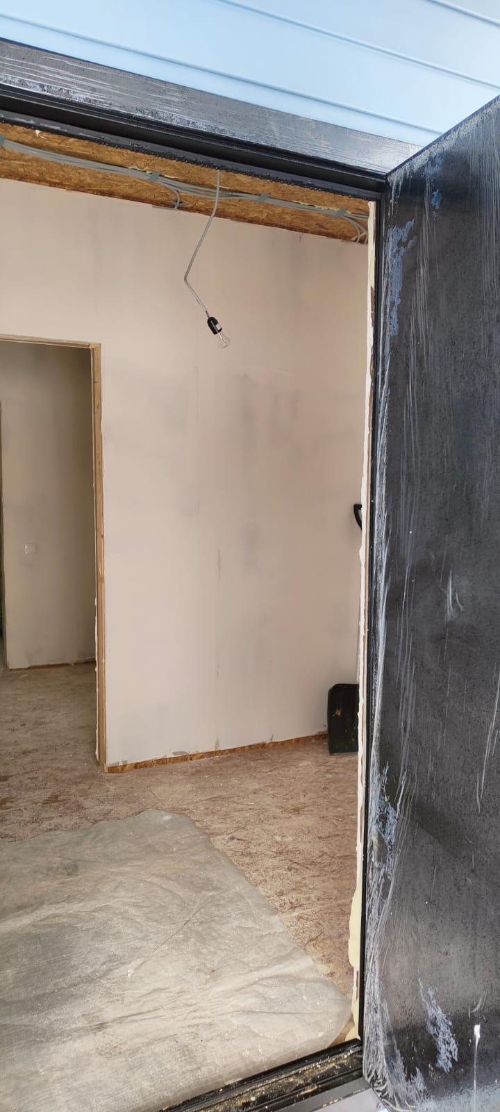 Дом построен из сип-панелей. Отопление электрическое. В доме две комнаты, их площадь — по 10,75 кв.м каждая.