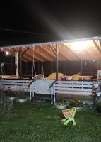 На участке есть беседка площадью 48 метров, детский комплекс, курятник, сарайка-вагончик, теплица, дровеник с запасом дров на два года, а также много насаждений.