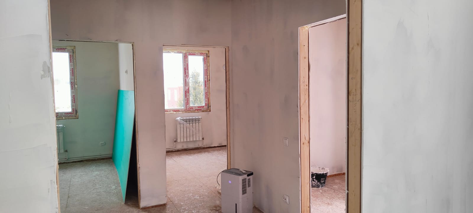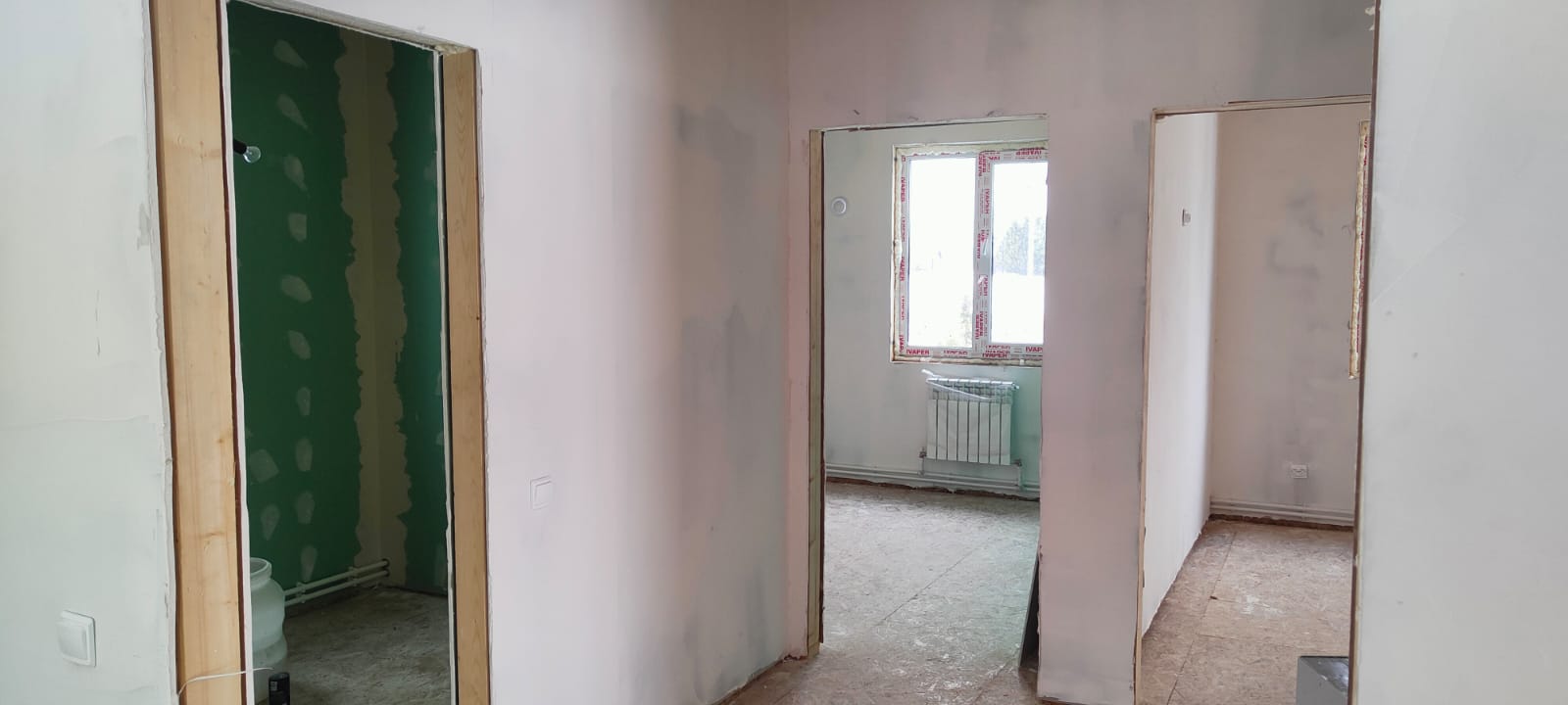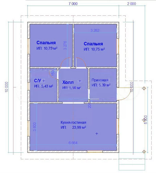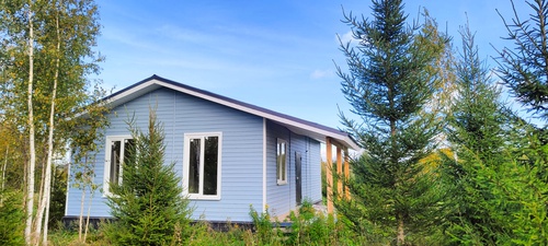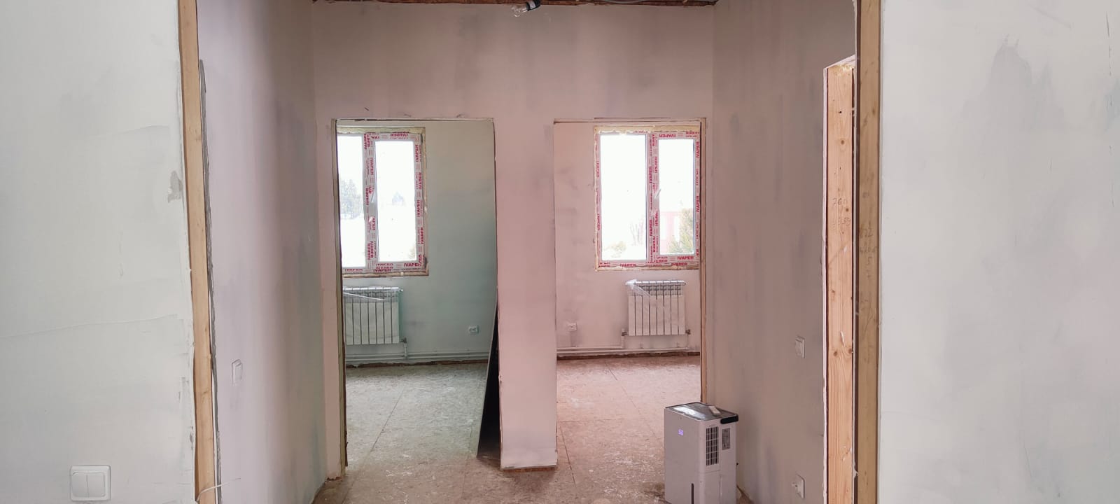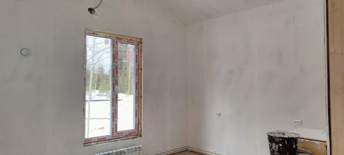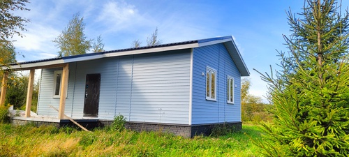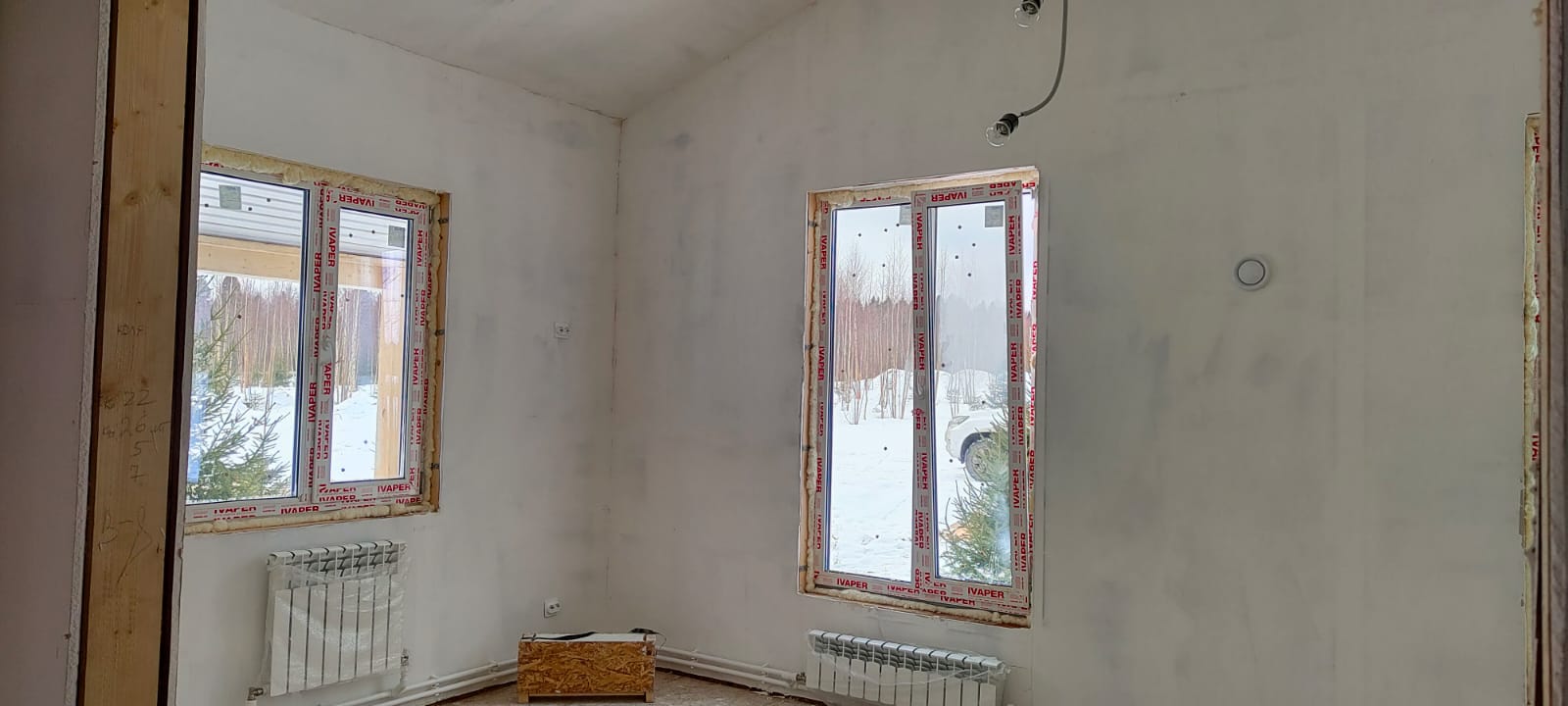 Дом построен из сип-панелей. Отопление электрическое. В доме две комнаты, их площадь — по 10,75 кв.м каждая.