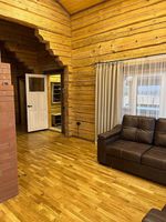 - Вся мебель сделана на заказ из массива дерева. В доме остается частично мебель (кухня, столы, стулья, кровати и техника)