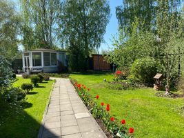 Дом укрыт от шума дорог в зелёном оазисе спокойствия.