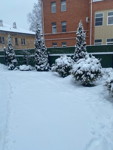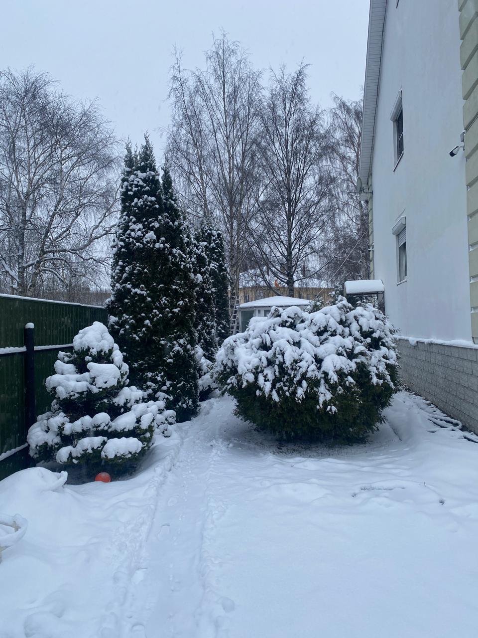 Ландшафтный дизайн: взрослые туи, яблони, гортензии, идеальный газон «Канада грин».