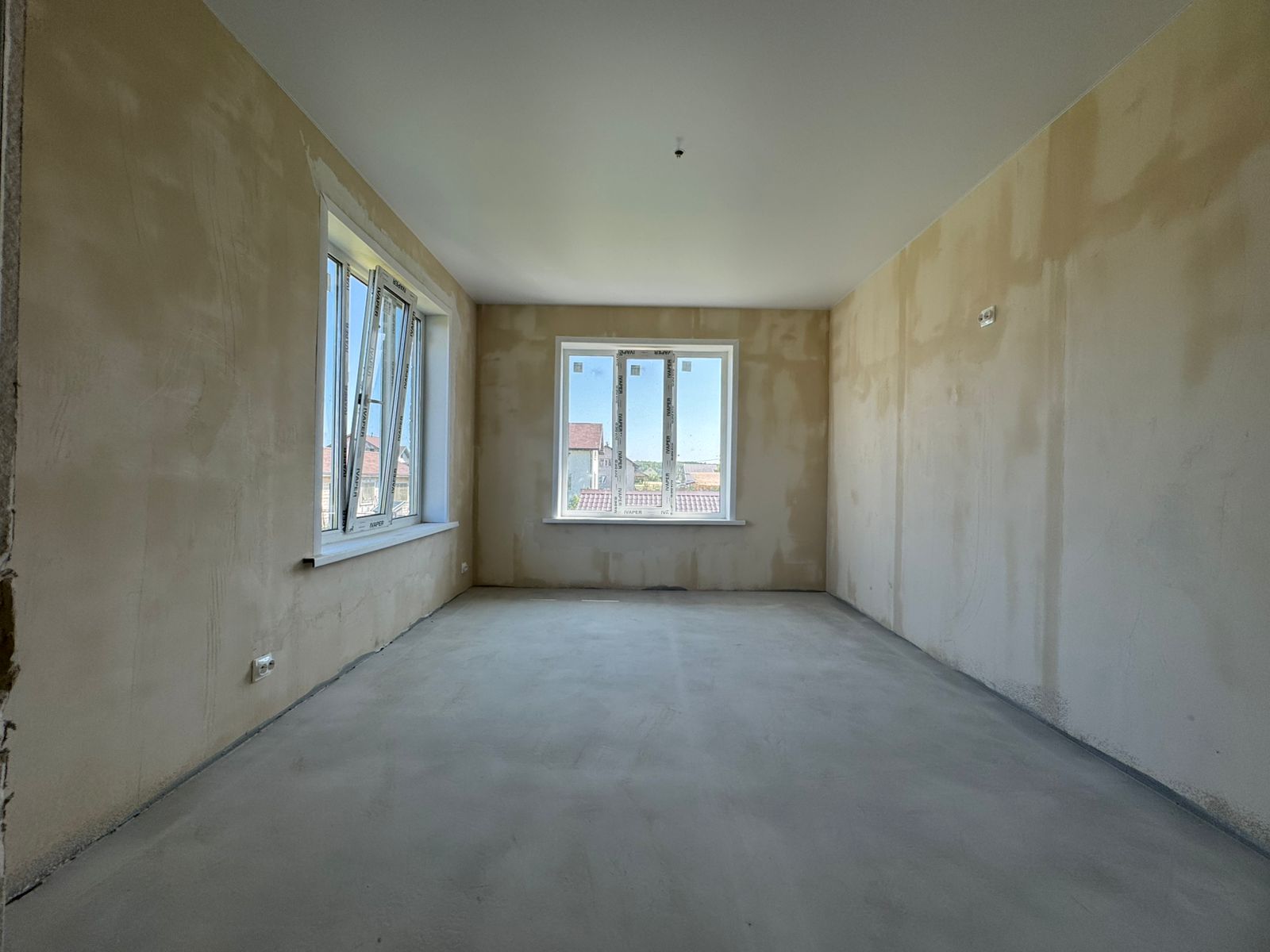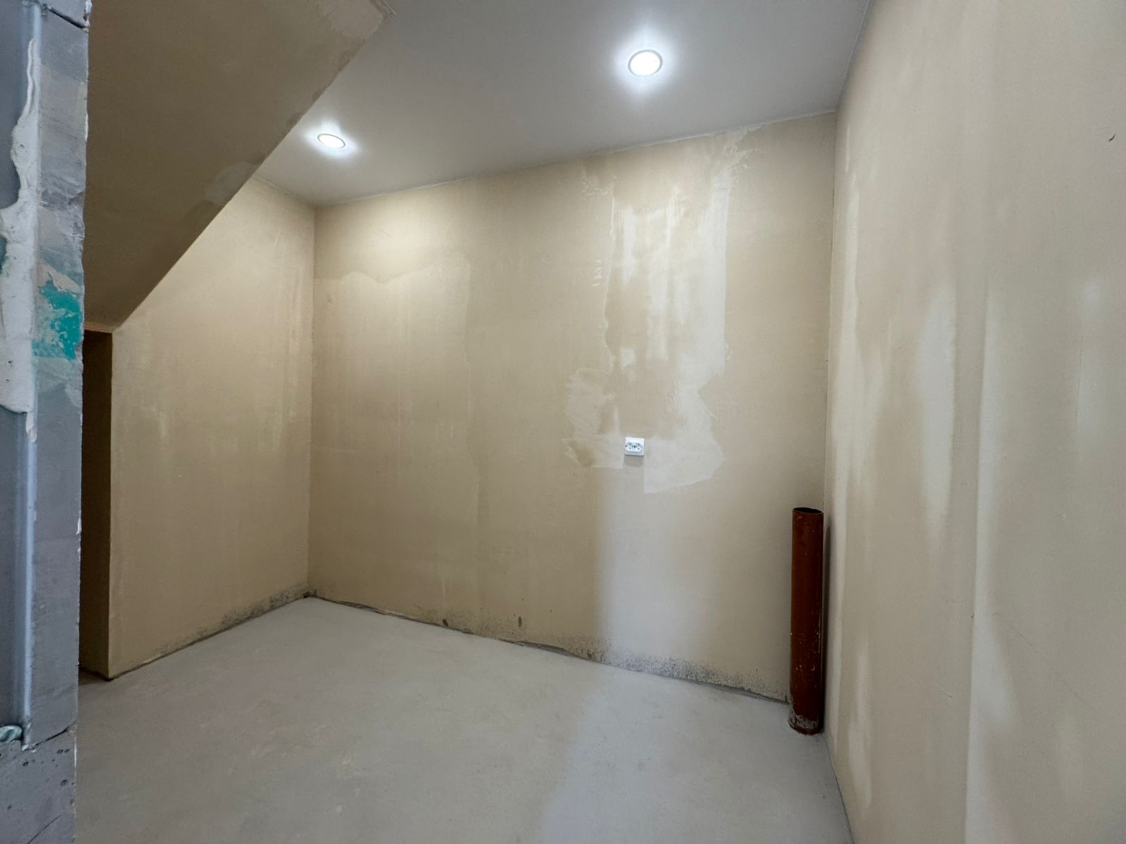 В доме два жилых помещения площадью 12,8 и 16,4 кв. м, кухня - гостиная занимает 33 кв. м. На каждом этаже расположены санузлы.
