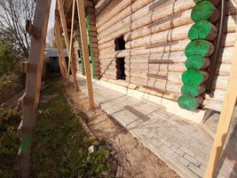 Отмостка: утеплена, уложена брусчатка шириной 1,5 метра.
