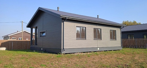 Общая площадь дома составляет 95 квадратных метров, где вы найдете все, что нужно для уютного проживания. Просторная кухня площадью 35,7 кв. м — идеальное место для семейных ужинов и встреч с друзьями. В доме три комнаты, которые можно легко обустроить под свои нужды, чтобы создать комфортное пространство для всей семьи. Большие окна заполняют светом каждый уголок, создавая теплую атмосферу.