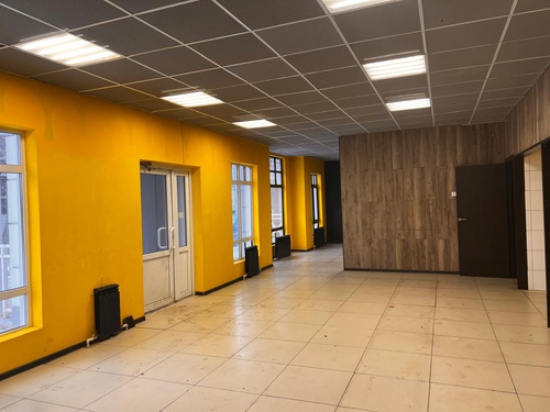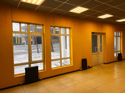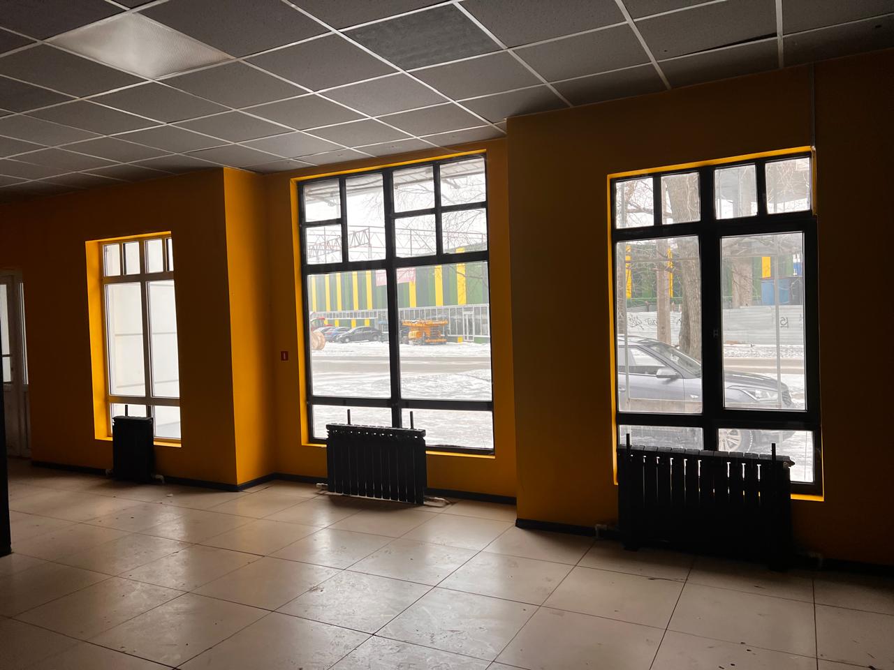Помещение правильной формы, с витринным остеклением, состояние на "4". Помещение имеет два входа, высота потолков 2,8 м, пол плитка, подвесные потолки со светодиодными светильниками.