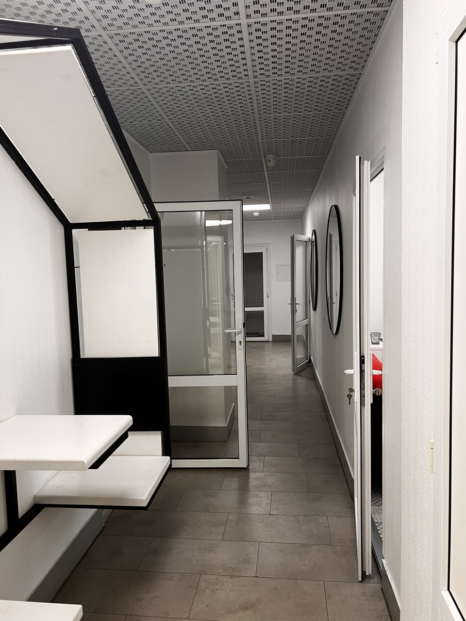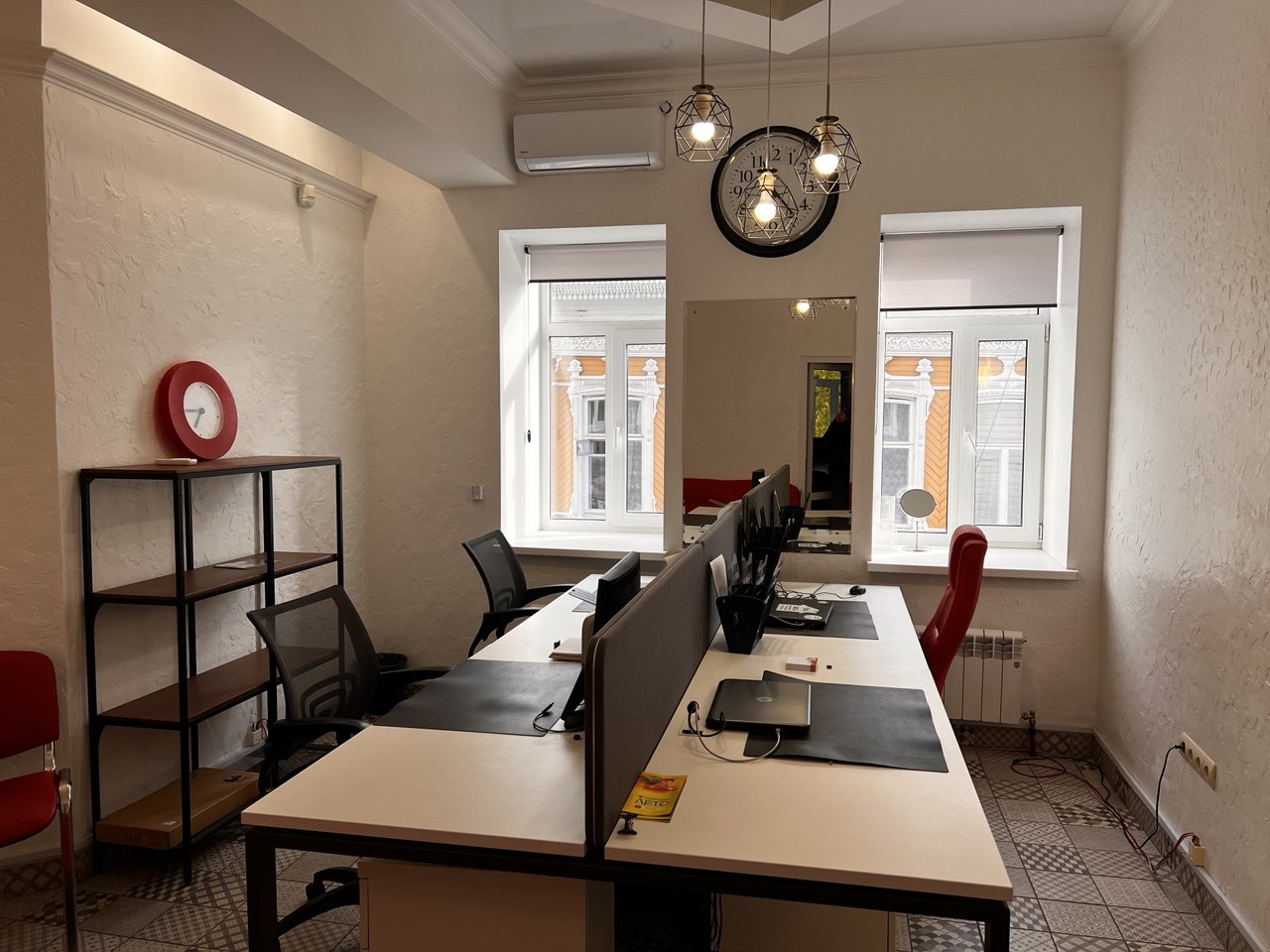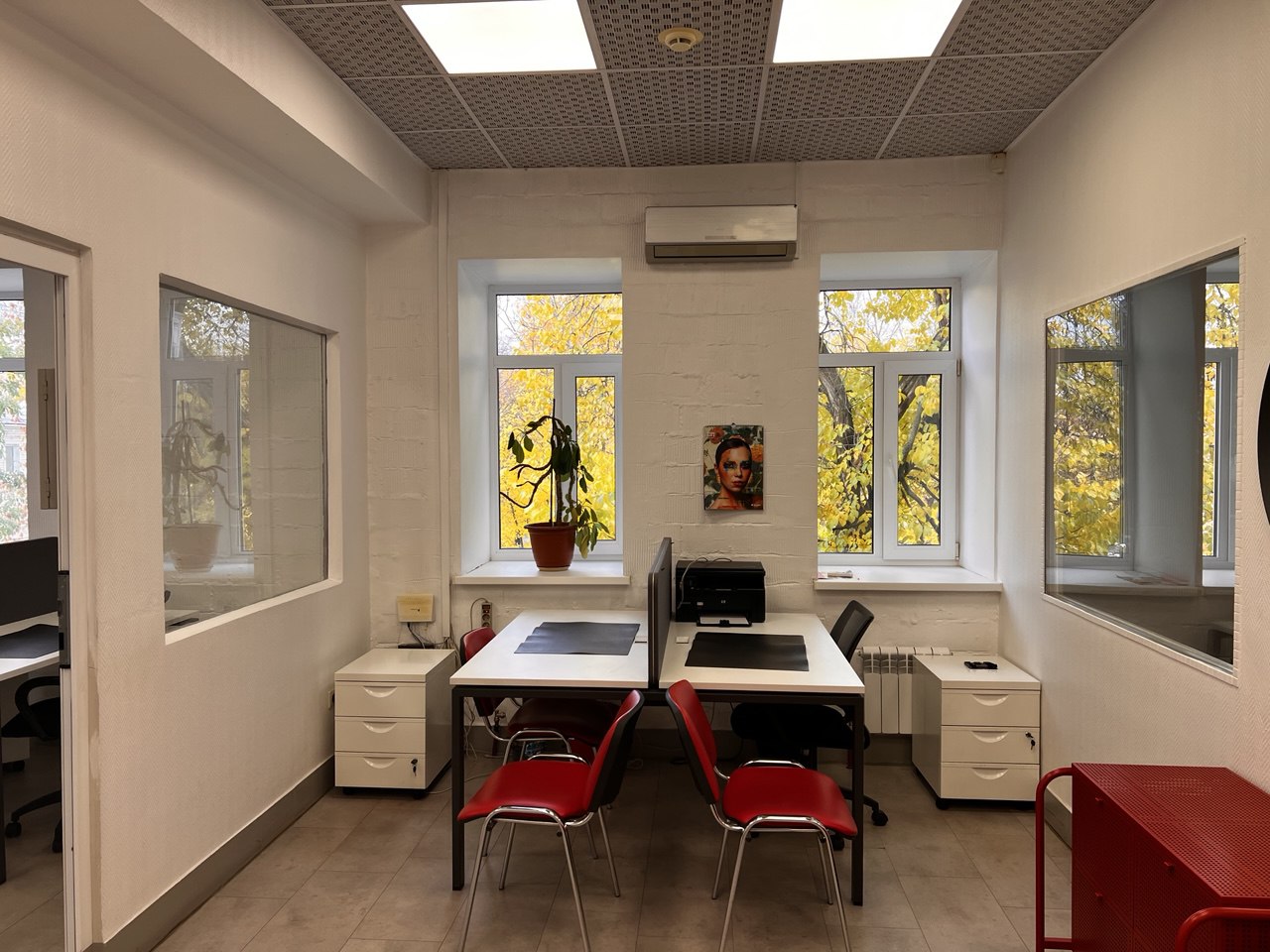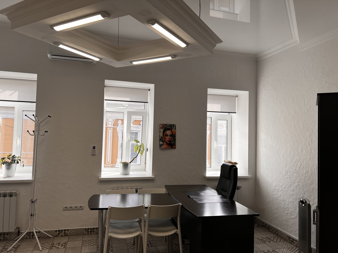 Помещение имеет независимый вход с крыльцом и включает зону ресепшн, 4 кабинета, две переговорных и 2 индивидуальных санузла. В помещениях выполнен качественный дизайнерский ремонт. Высокие потолки с встроенными светильниками, большие пластиковые окна с жалюзи, пол - плитка, кварцвинил, наличие кондиционеров, ОПС, СКС.