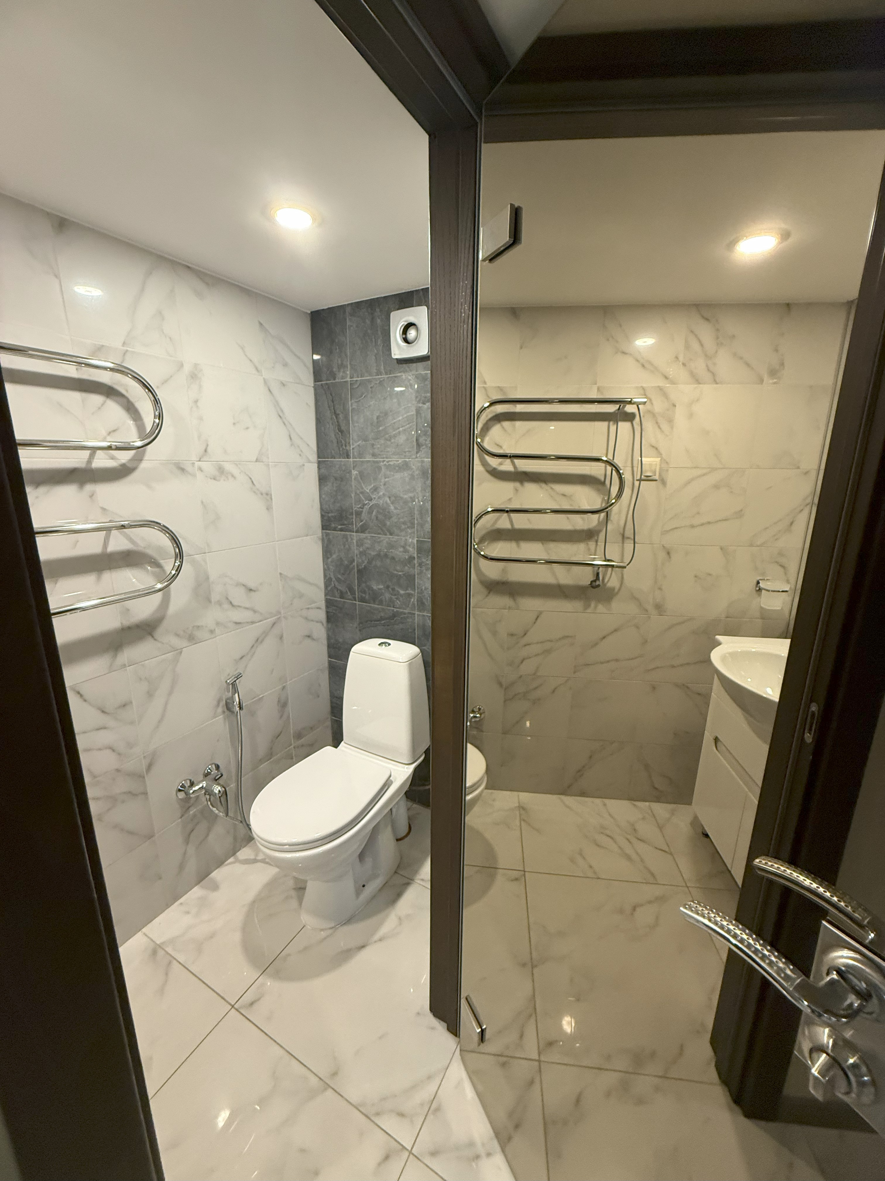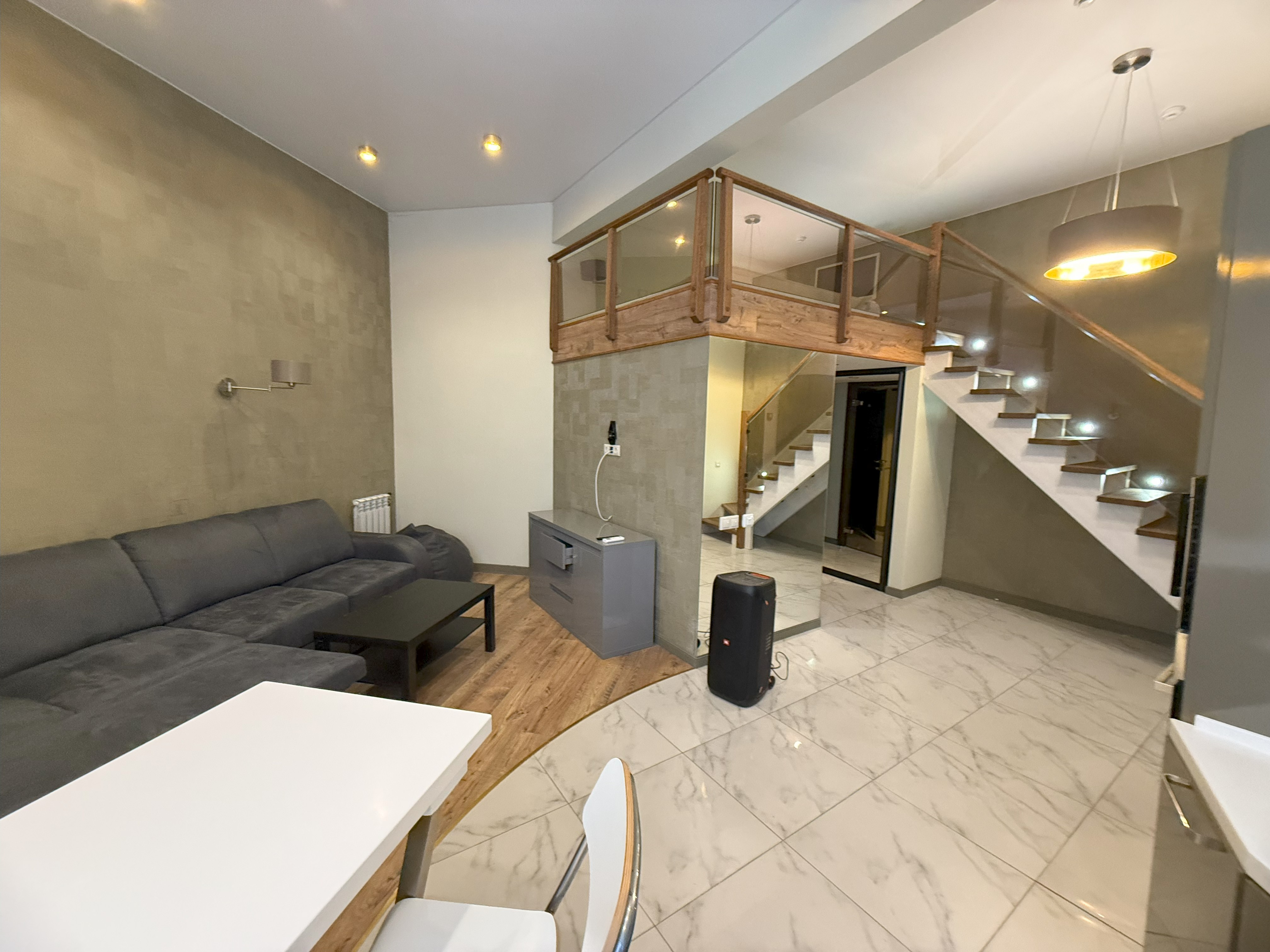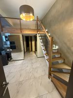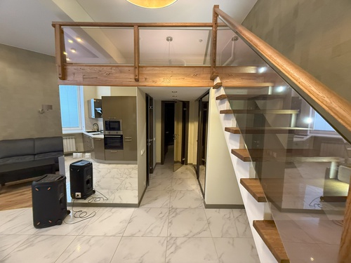 Апартаменты находится в цокольном этаже. Цоколь высокий. Вход удобный отдельный, на уровне земли, что делать этот объект идеальным.