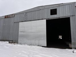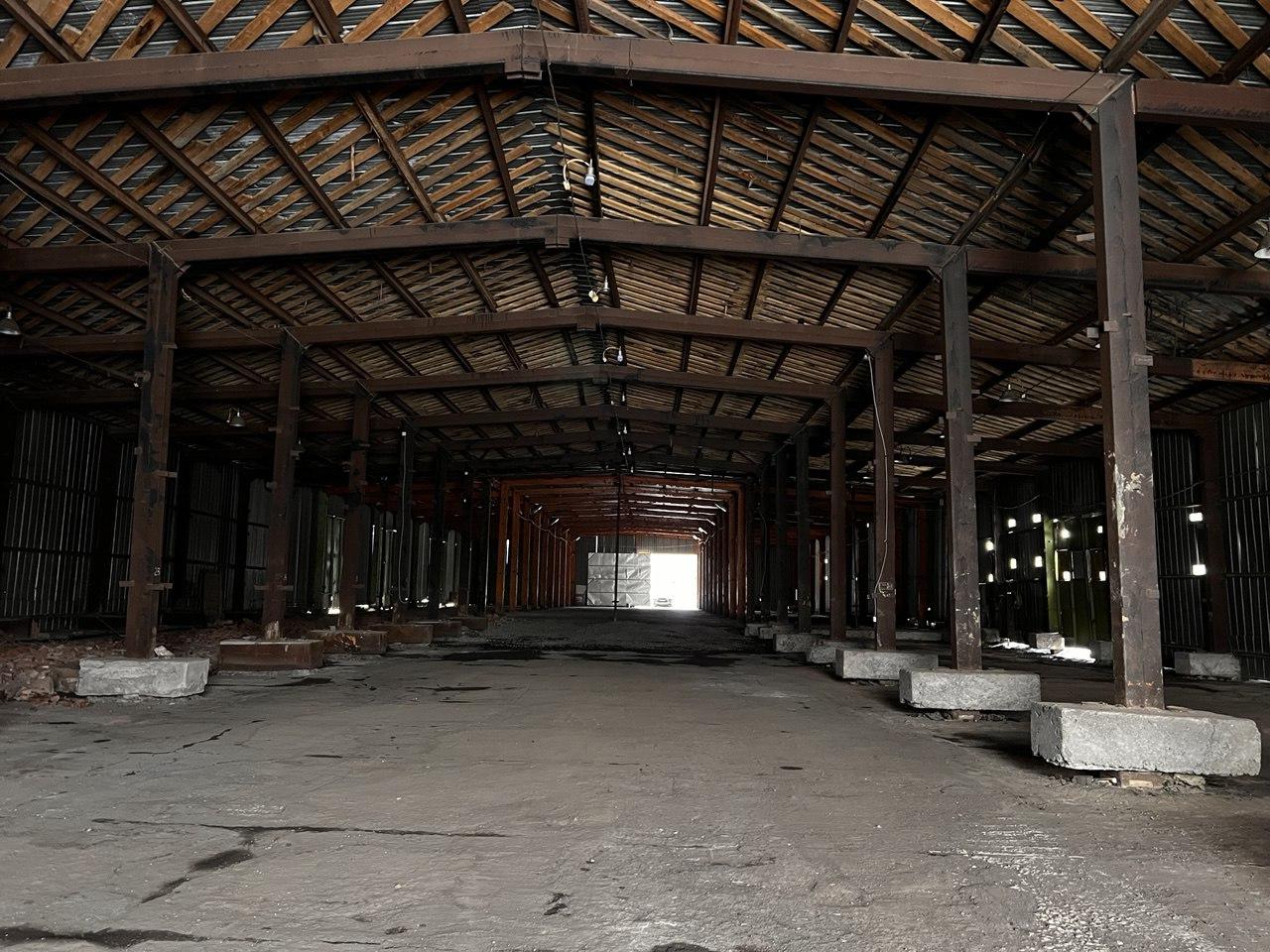 Высота потолков 7 м, пол бетонный под погрузчик, освещение. Двое откатных ворот с торцов здания и трое боковых распашных ворот размером 4.50х5.00 м.