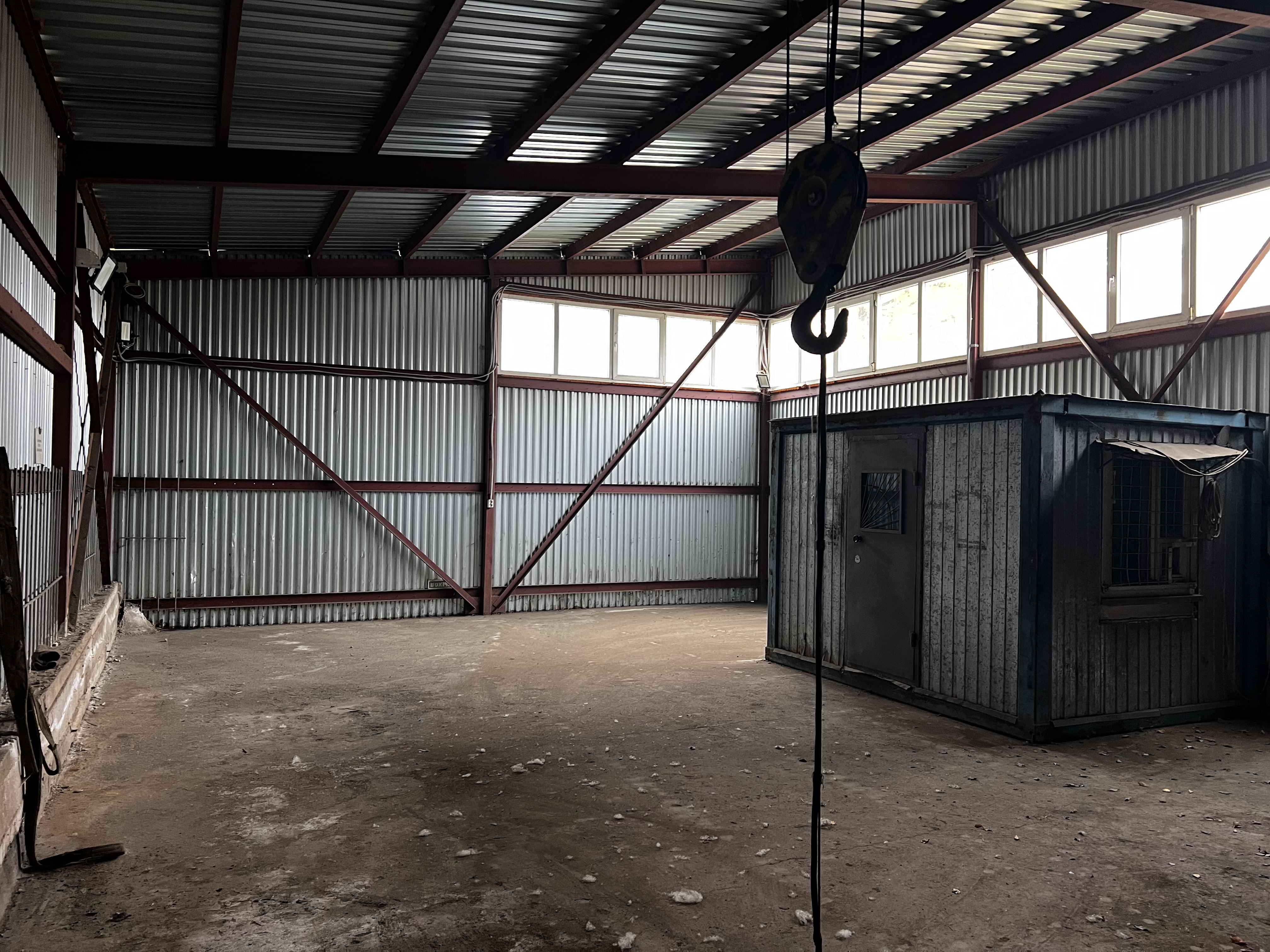 ✅Ангар металлический утепленный размером 8 х 12 м, высота 4,5 м, ворота высотой 4,2 м. Оборудован тельфером на 0,3 т