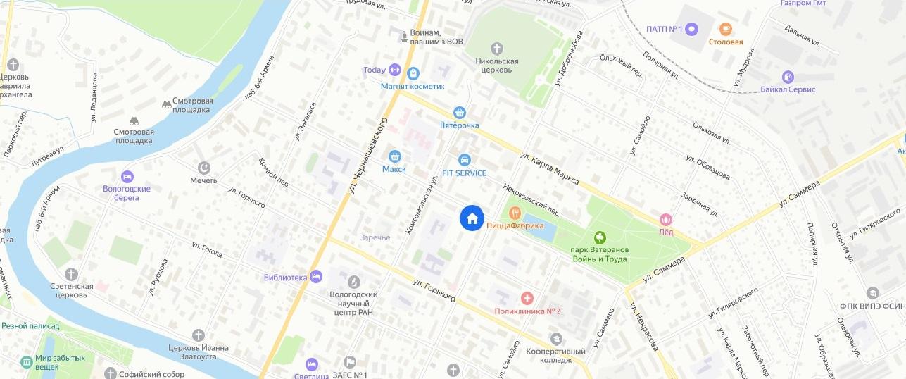 Жилой дом находится практически в центре района Заречье г. Вологда, недалеко от пересечения улиц Некрасова и Добролюбова. Развитая инфраструктура - в шаговой доступности школа, детские сады, поликлиника, парк ветеранов, Семейный ресторан - Пицца Фабрика. Спокойный тихий район является идеальным местом для комфортной семейной жизни! улица Некрасова