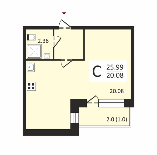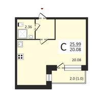 Общая площадь составляет 25,3 кв. м.Свежий ремонт придаёт квартире современный и привлекательный вид. Высота потолков — 2,5 метра. Студия полностью готова к проживанию без дополнительных вложений.