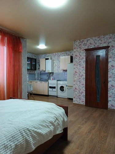 Студия имеет одну комнату площадью 20 кв. м и кухню площадью 5 кв. м. Есть возможность зонирования. Окна выходят на улицу, обеспечивая хорошее естественное освещение и вид.