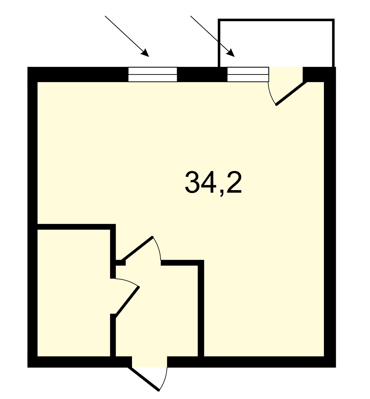Общая площадь — 34,2 кв. м, жилая площадь — 16,2 кв. м;