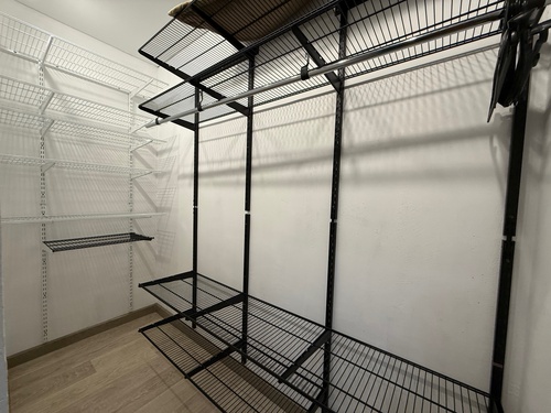Выделено отдельное помещение - гардеробная. Отличное решение для зонирования мест для хранения вещей.