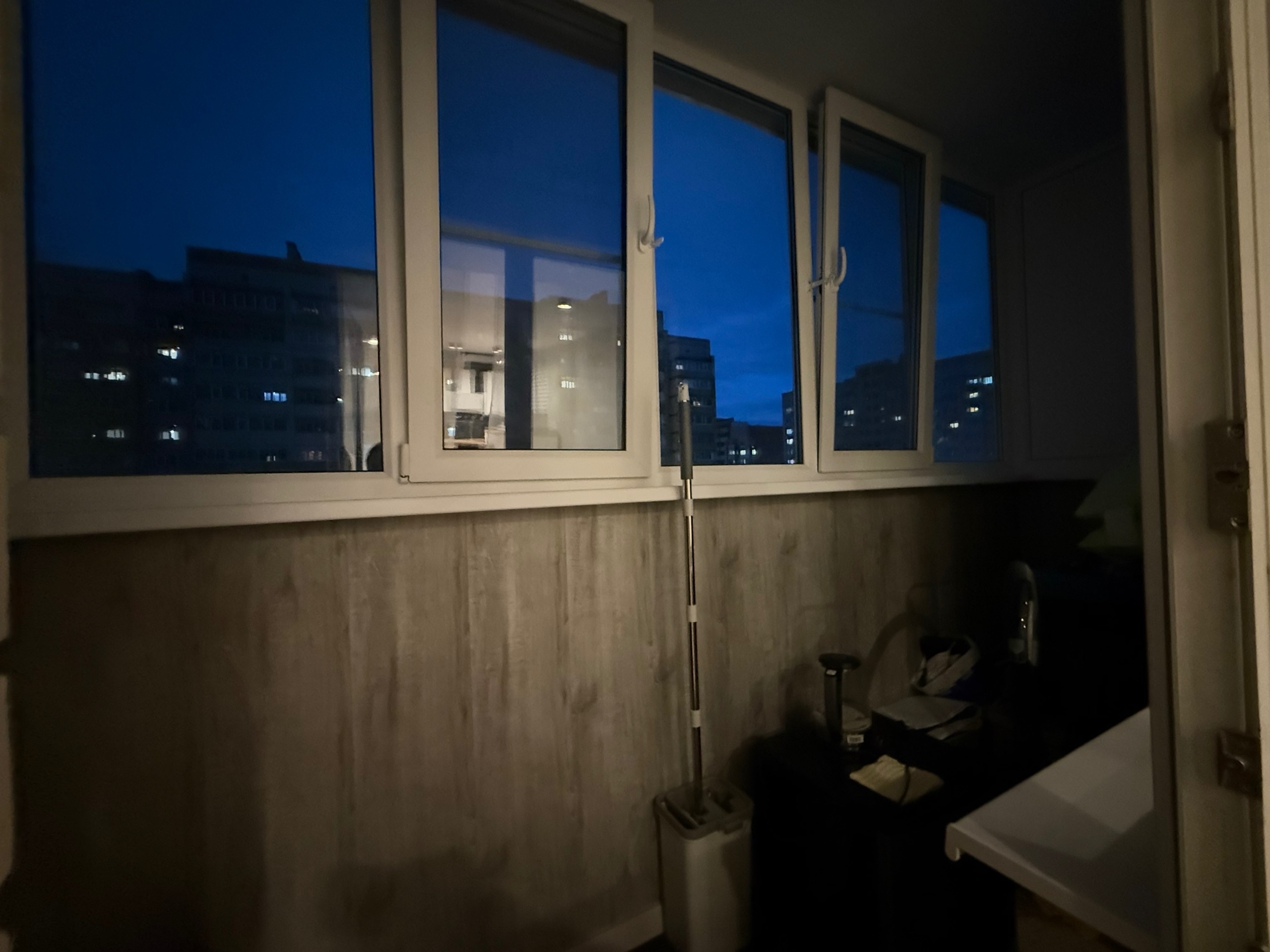 Лоджия застеклена, окна выходят на облагороженную территорию комплекса.