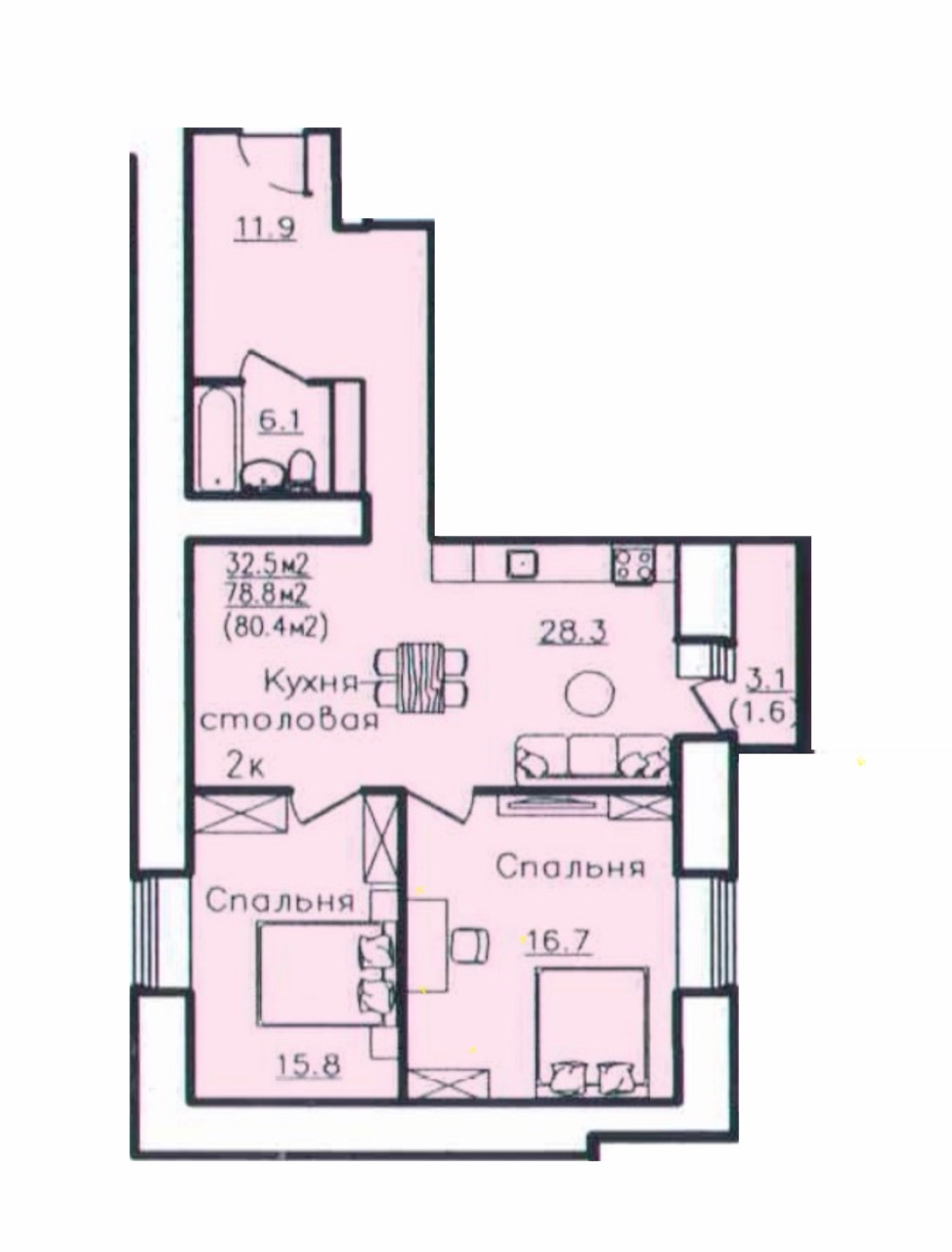 * Изолированные детскую и спальню, а большую кухню-гостиную (28.3 м²) — местом для семейных вечеров.