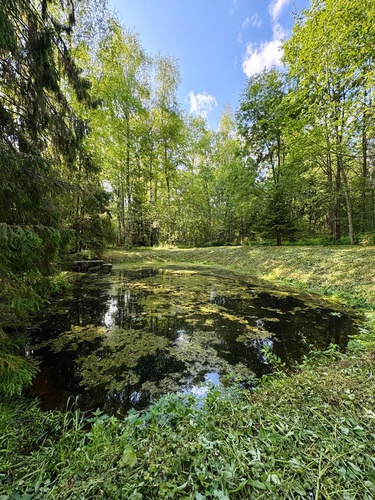 Рядом с участком лес с прудом.