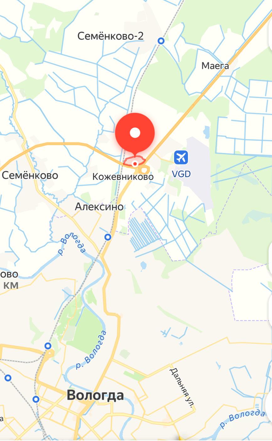 Расстояние от Вологды 3 км, 5 минут на машине.