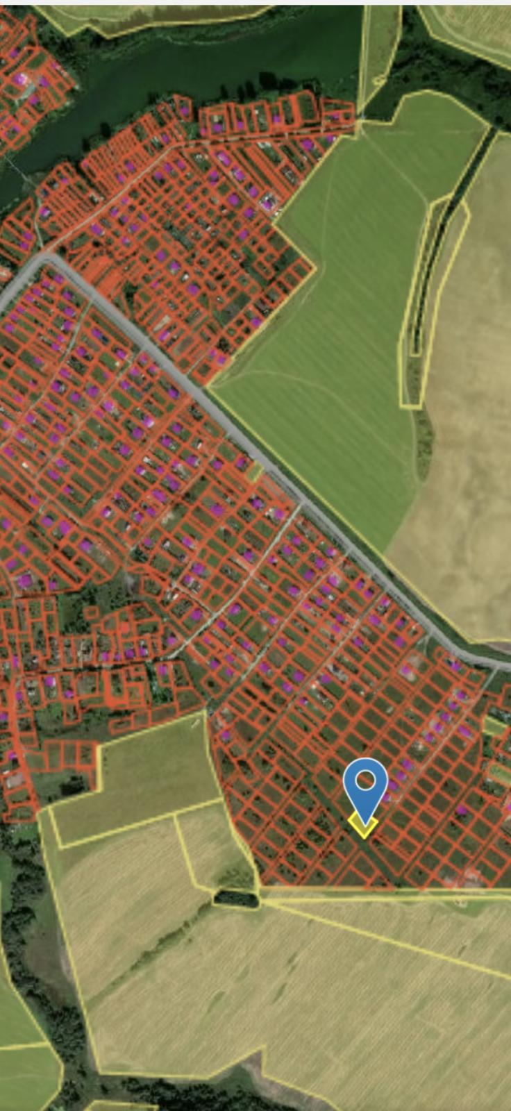 Участок расположен вдали от дороги, что обеспечит тишину и отсутствие пыли. Вокруг идет застройка частным сектором.