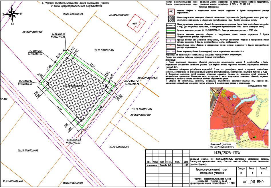 Кадастровый номер 35:25:0706002:425 координаты 59.1337015, 39.8306353