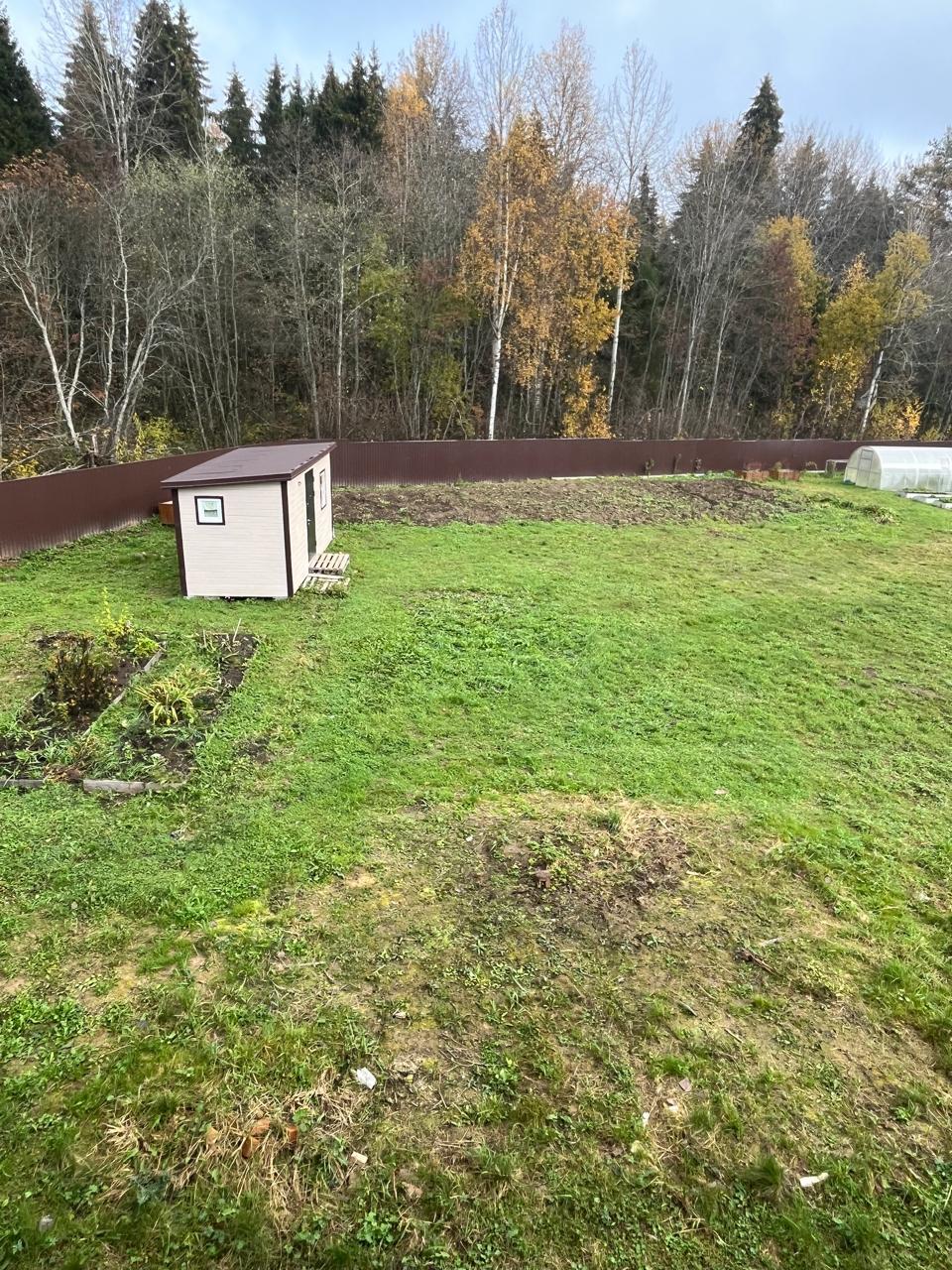На участке расположена современная бытовка – отличное решение для организации рабочего пространства и хранения материалов.
