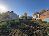 Заезд к участку с проспекта Победы у дома 32. Участок огорожен металлическим забором.