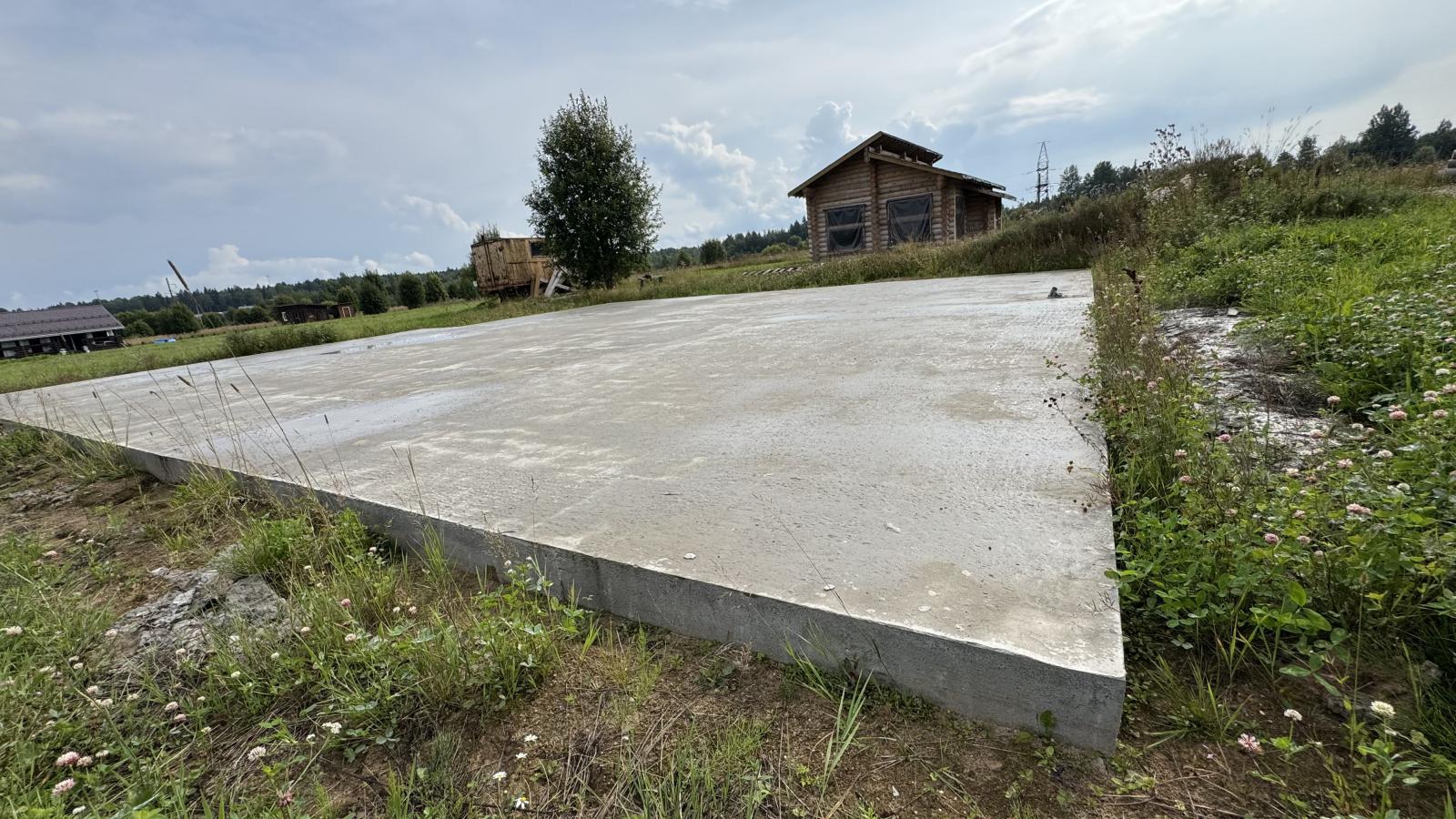 Также на участке выполнена монолитная ж/б плита для строительства дома. Тольщина 20 см. Сделаны закладки под электро и водопровод.