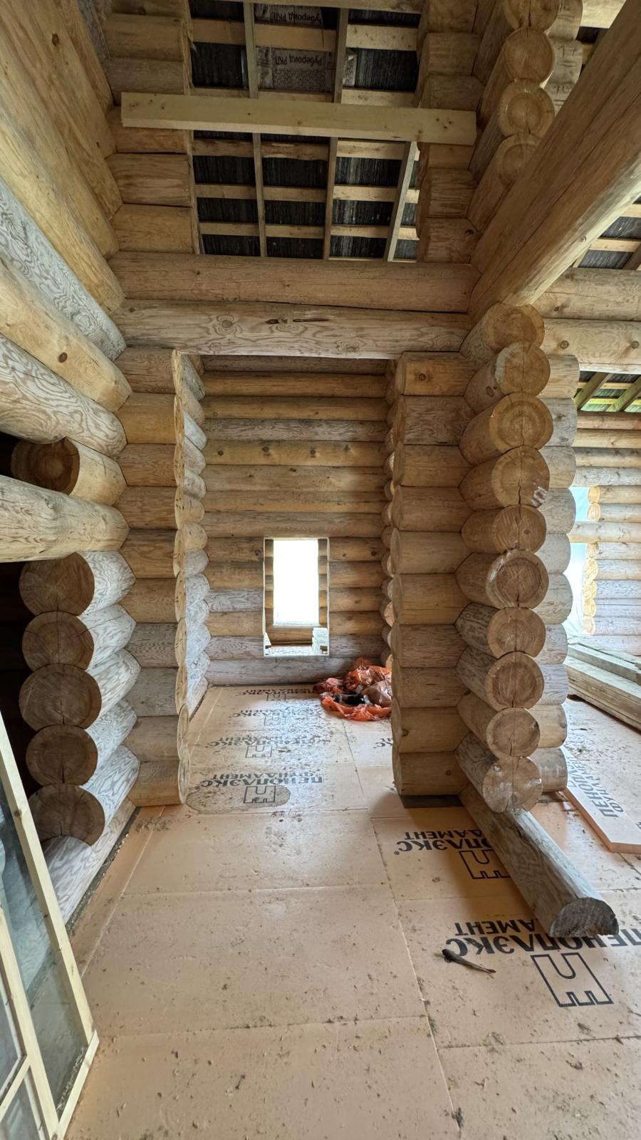 Бревно 30/32. Сделана обработка антисептиком. Пол утеплен.